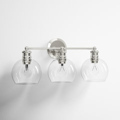 Bathroom hardware bathroom faucets shower heads. Shop for bathroom lighting fixtures online at target. If the vanity has multiple sinks, another option is to place a smaller light centered above each sink. James allan vermillion 3 light 21 wide led bathroom vanity light with outer clear glass and heavy sand blast inner glass. How many lights you need. See two, three and four light vanity lights as well as a variety of other bath lighting options. Do you ever check into a hotel and drool over the bathroom?